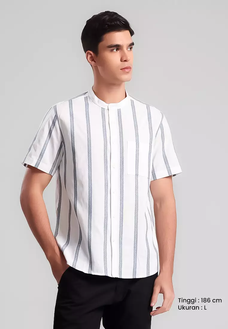 MANZONE - Kemeja Shanghai Lengan Pendek Pria Sadiq Modern Fit - White Warna White
