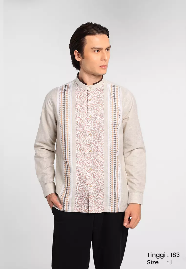 MANZONE X Adipati Dolken - Kemeja Koko Lengan Panjang Pria Alaba Modern Fit - Khaki Warna Khaki