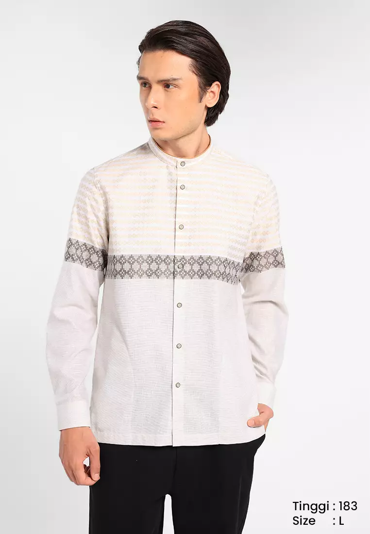 MANZONE X Adipati Dolken - Kemeja Koko Lengan Panjang Pria Ubaidah Modern Fit - Beige Warna Beige
