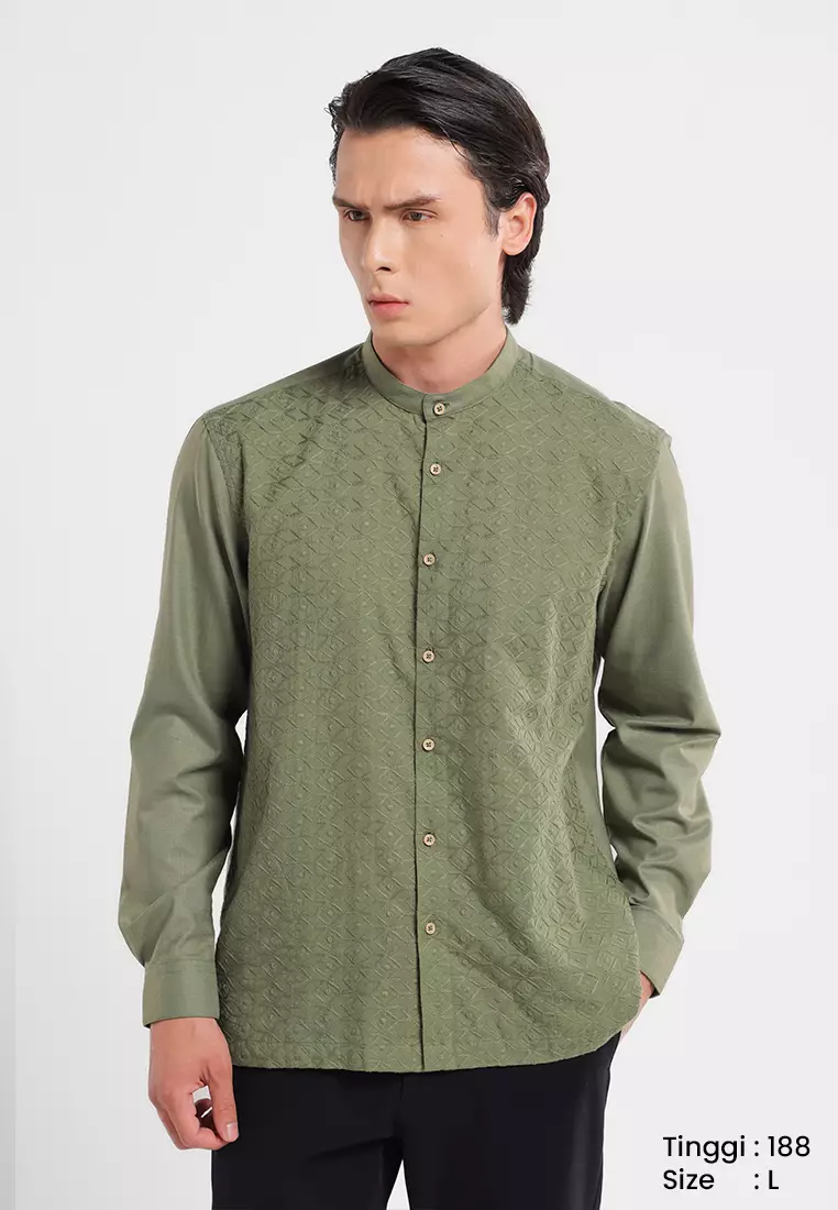MANZONE X Adipati Dolken - Kemeja Koko Lengan Panjang Pria Ziya Comfort Fit - Sage Warna SAGE