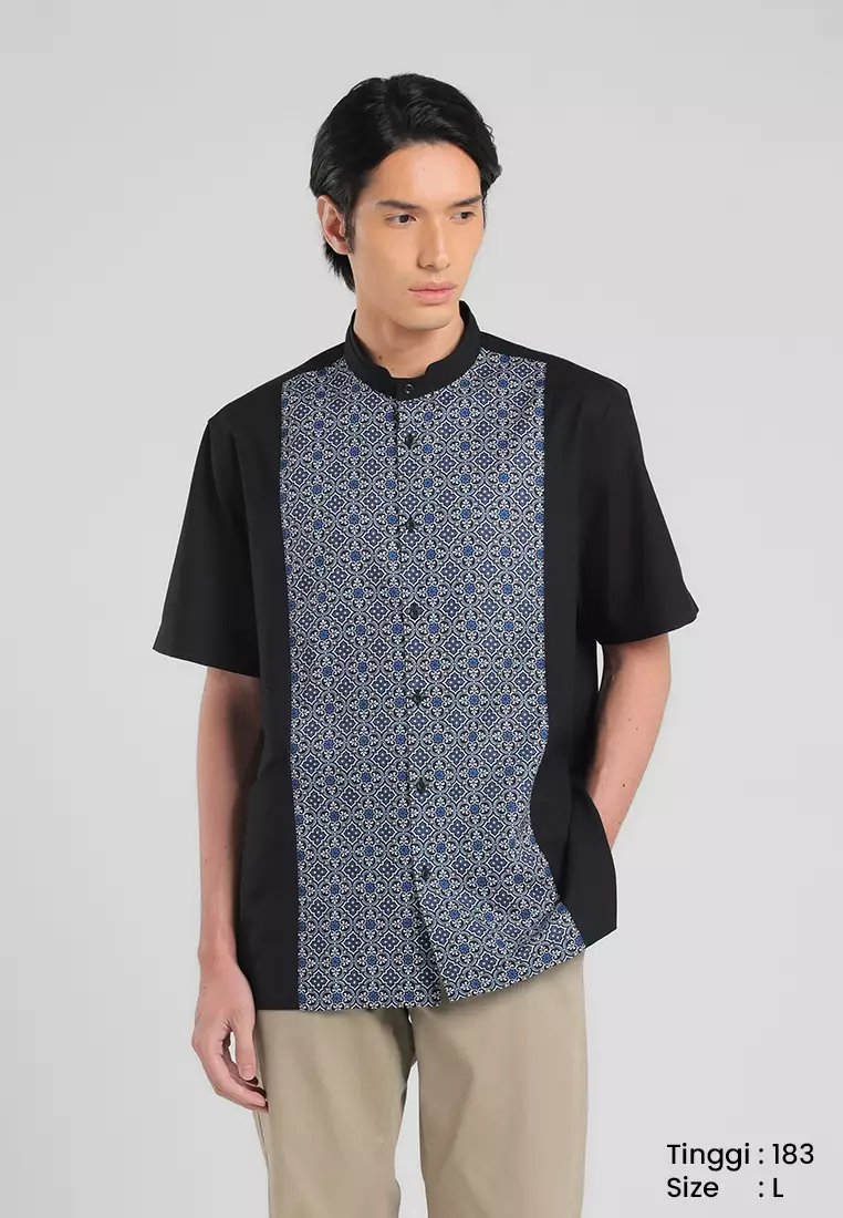 MANZONE X Adipati Dolken - Kemeja Koko Lengan Pendek Pria Aruba Comfort Fit - Black Warna Black