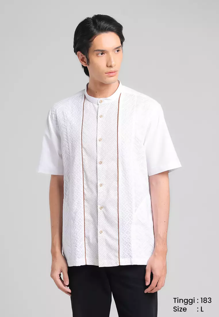 MANZONE X Adipati Dolken - Kemeja Koko Lengan Pendek Pria Muadz Comfort Fit - White Warna White