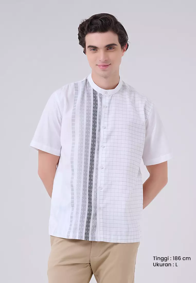 MANZONE X Adipati Dolken - Kemeja Koko Lengan Pendek Shiraz Comfort Fit - White Warna White