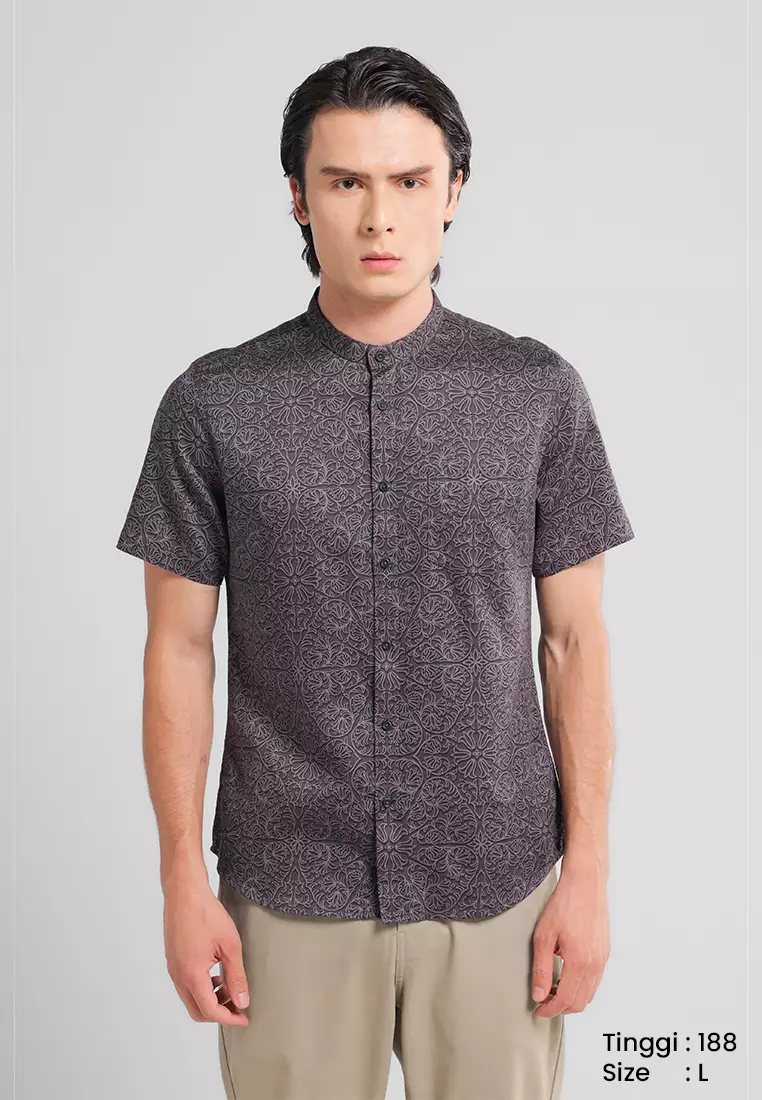 ManzoneMANZONE X Adipati Dolken - Kemeja Koko Shanghai Lengan Pendek Pria Kareem Slim Fit - Black Warna Black479900.00209900.00