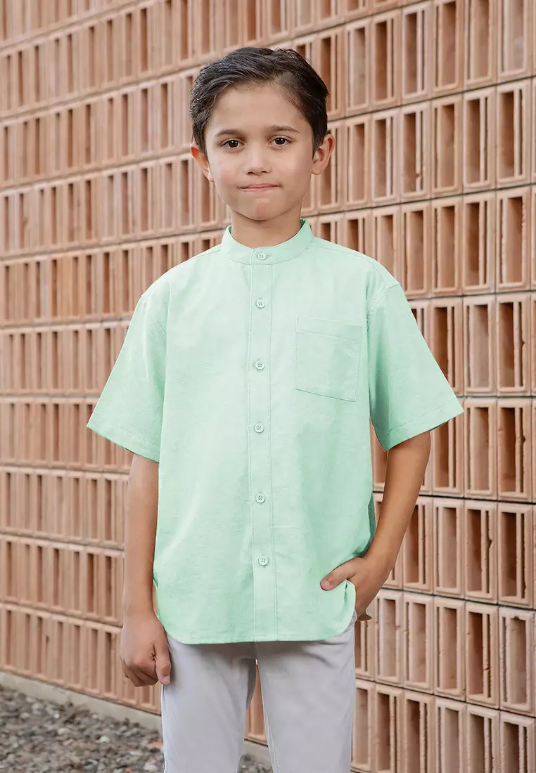 MANZONE X MINIMAL - Kemeja Koko Lengan Pendek Anak Pria Aqara SS Junior - Green Warna Green_Light