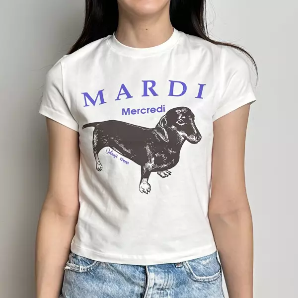 Kaos MARDI MERCREDI DOG PURPLE WHITE CROP TEE 100% ORIGINAL
