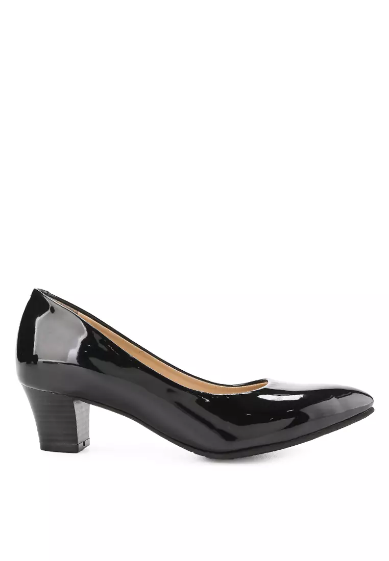 Venata Pantofel Wanita Kantor Pumps Hak 5 cm Black Patent