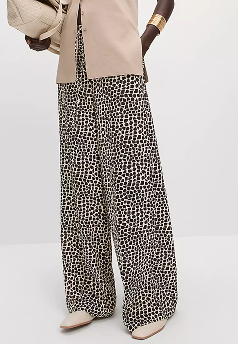 Animal Print Drawstring Wide Leg Trousers