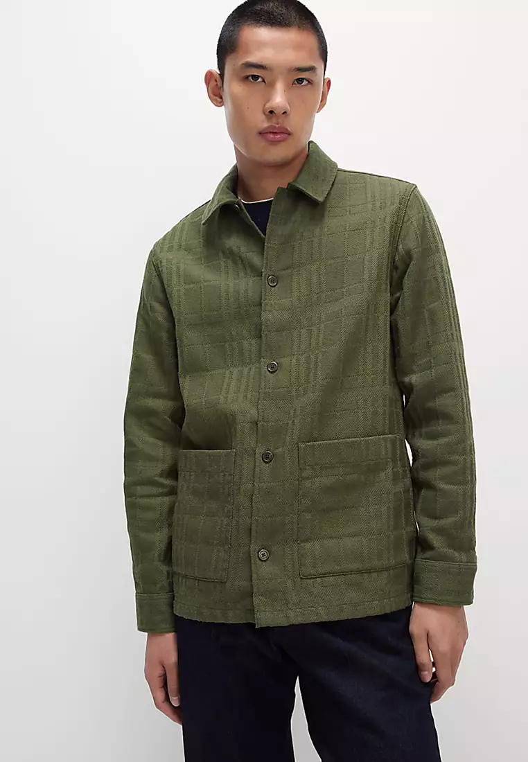 Cotton Blend Check Textured Overshirt