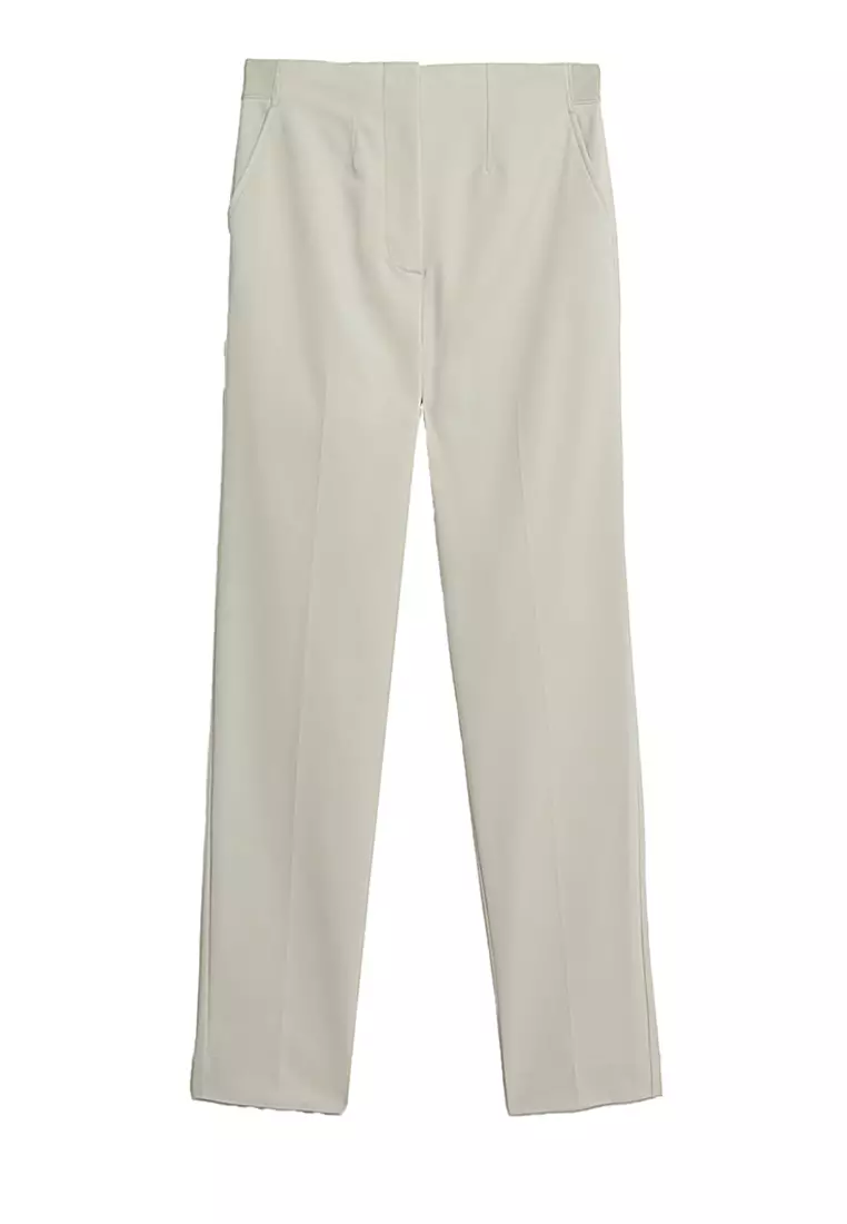 Cotton Blend Slim Fit Ankle Grazer Trousers