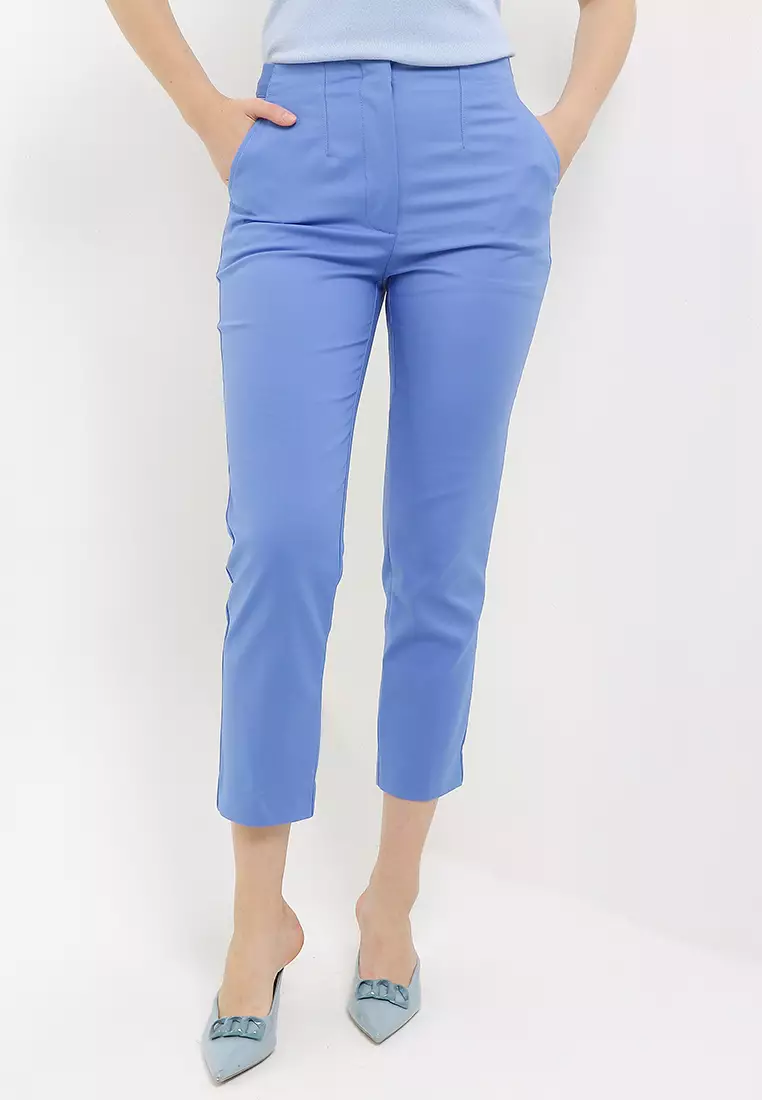 Cotton Blend Slim Fit Ankle Grazer Trousers