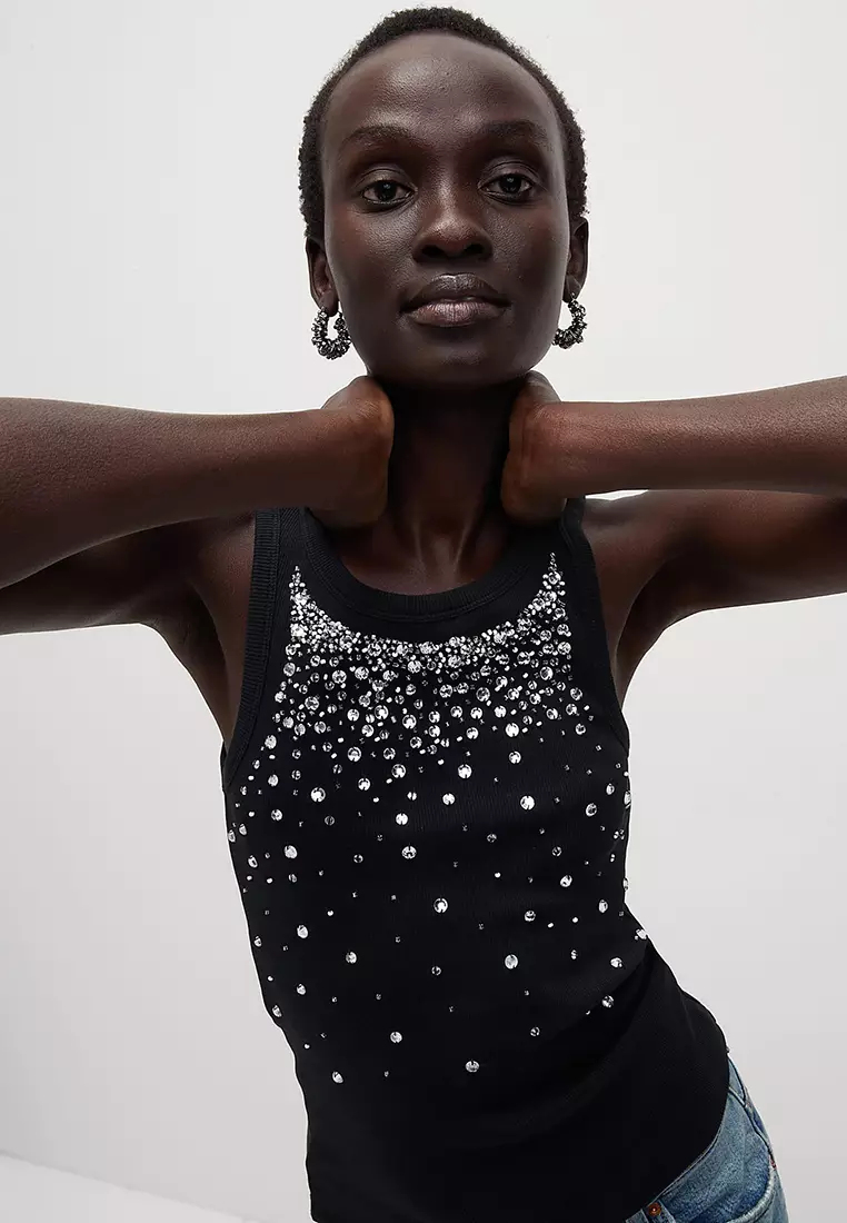 Cotton Rich Embellished Crew Neck Vest Top