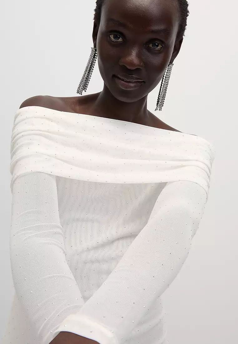Embellished Off The Shoulder Bardot Top