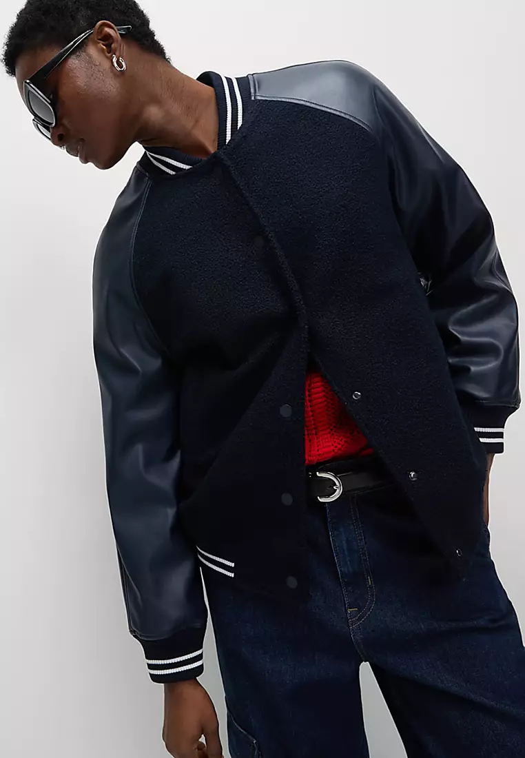 Faux Leather Relaxed College Bomber Jacket