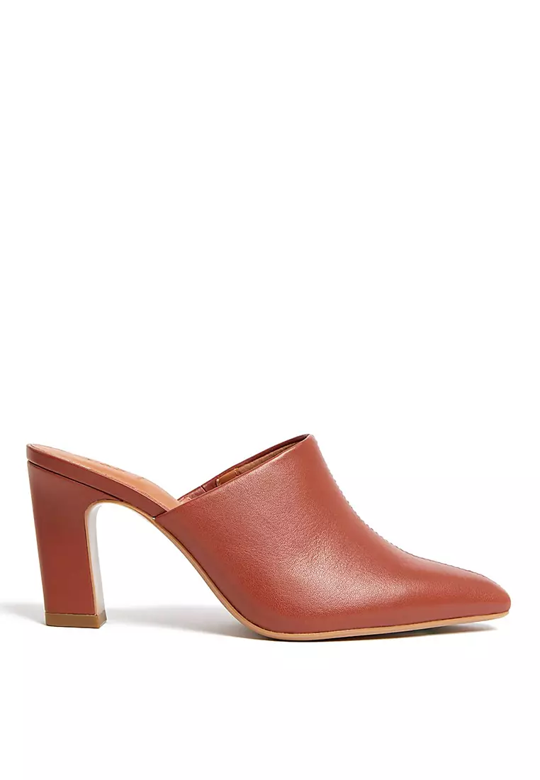 Leather Statement Heel Pointed Mules