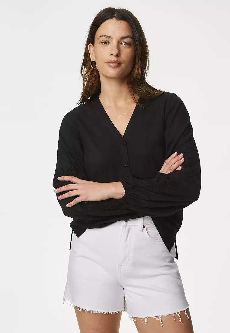 Marks & SpencerLinen Blend Embroidered V-Neck Blouse999900.00659000.00