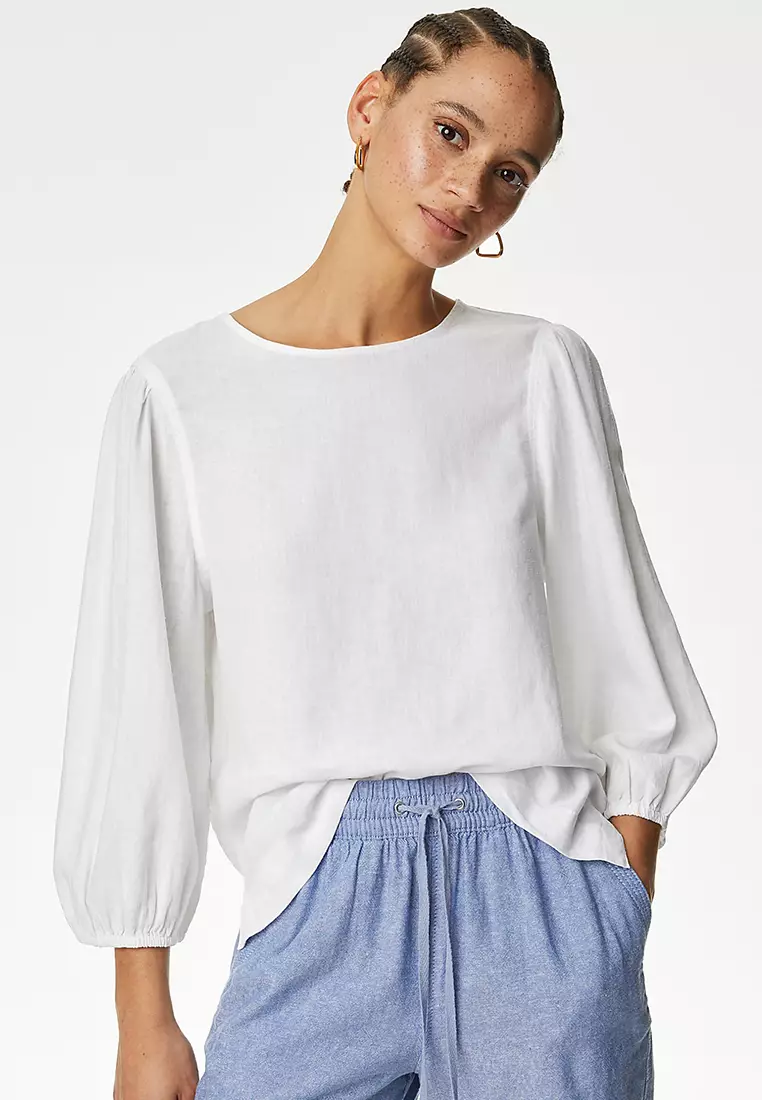 Marks & SpencerLinen Blend Round Neck Button Detail Blouse849900.00459000.00