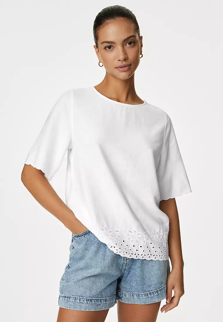 Marks & SpencerLinen Rich Broderie Regular Fit Top849900.00479000.00