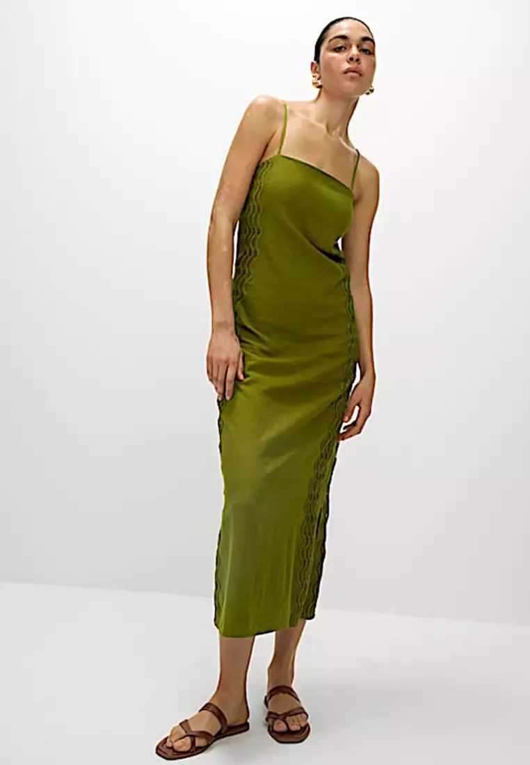 Linen Rich Square Neck Strappy Midi Shift Dress
