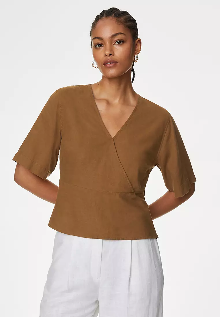 Marks & SpencerLinen Rich V Neck Kimono Sleeve Blouse849900.00559000.00