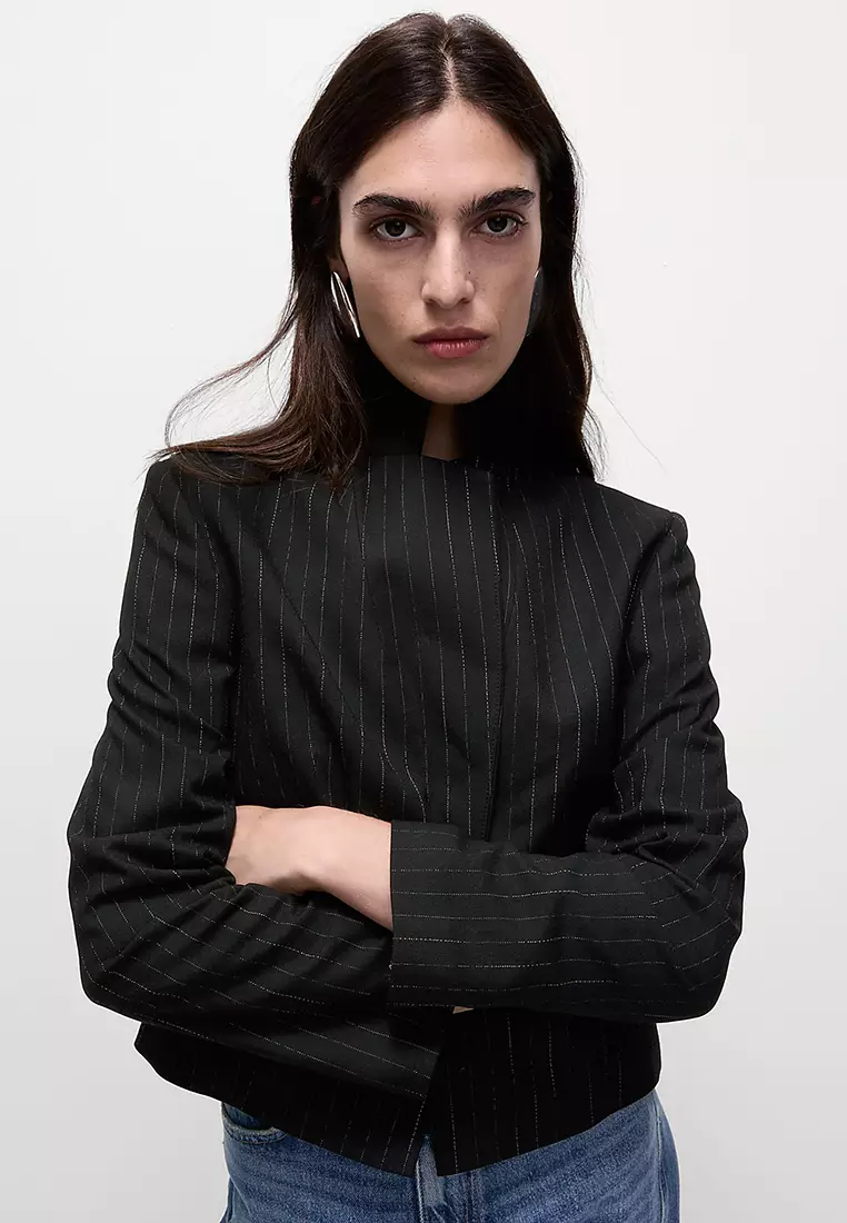 Pinstripe Single Breasted Cropped Blazer