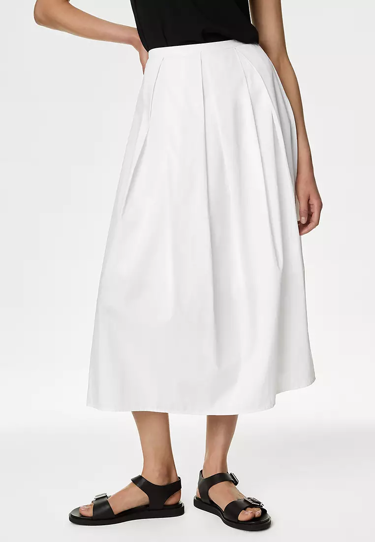 Pure Cotton Box Pleat Midaxi A-Line Skirt