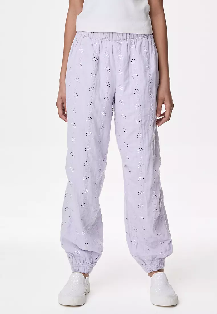 Pure Cotton Broderie Parachute Trousers