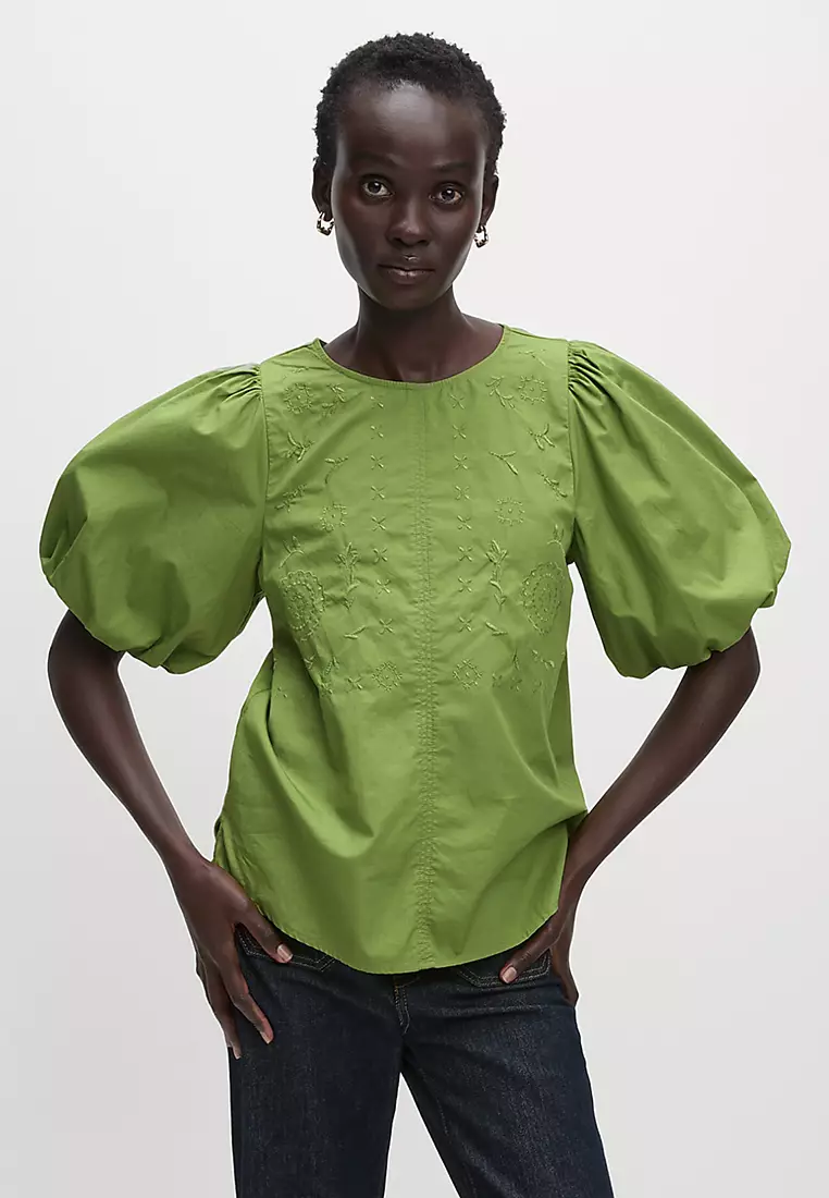 Pure Cotton Embroidered Puff Sleeve Blouse