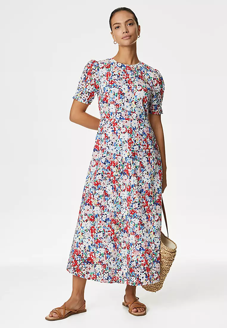 Pure Cotton Floral Cutwork Detail Midi Tea Dress