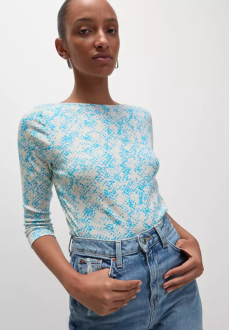 Pure Cotton Printed Slim Fit Slash Neck Top