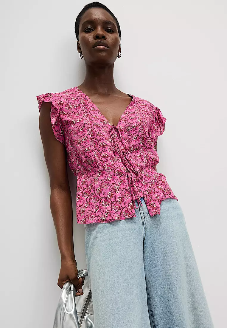 Pure Modal Floral Tie Front Blouse