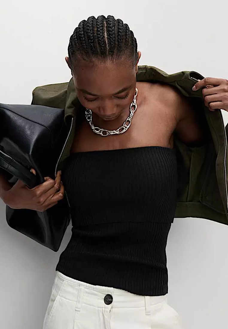 Ribbed Slim Fit Crop Bardot Top