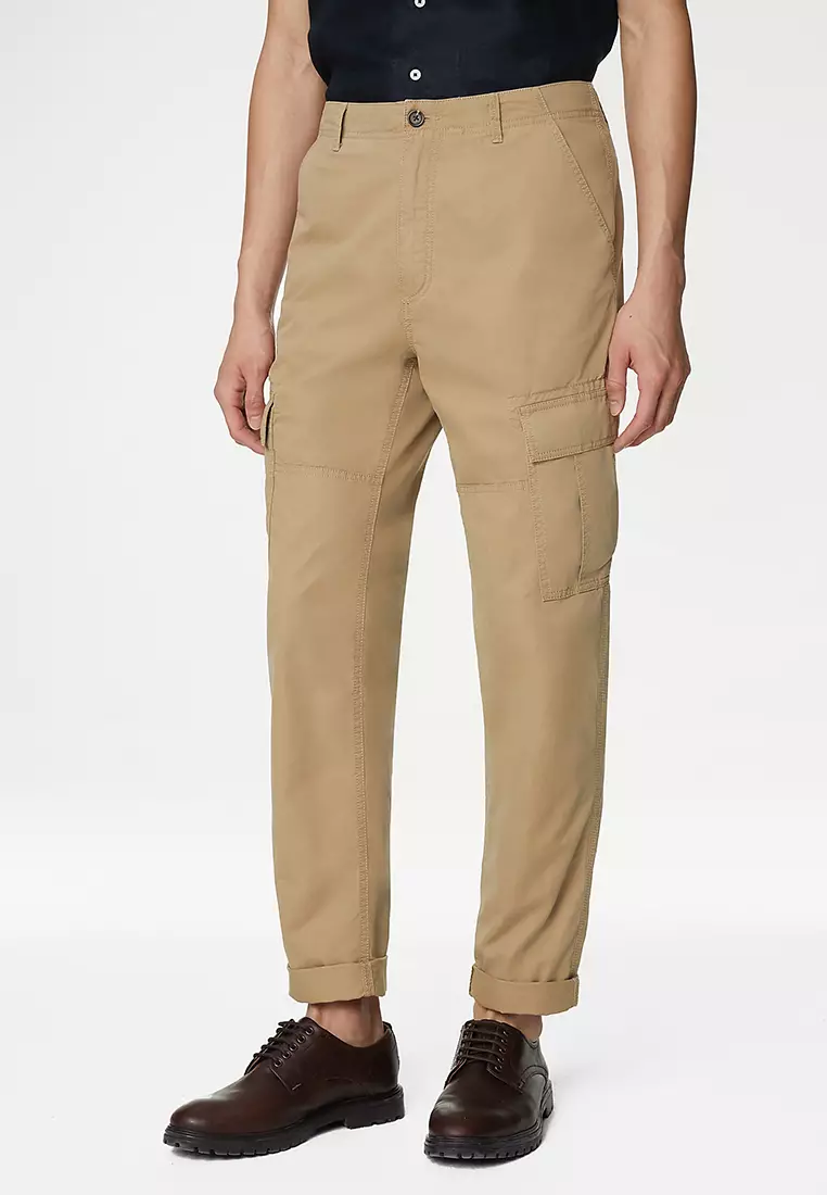 Tapered Fit Pure Cotton Lightweight Cargo Trousers