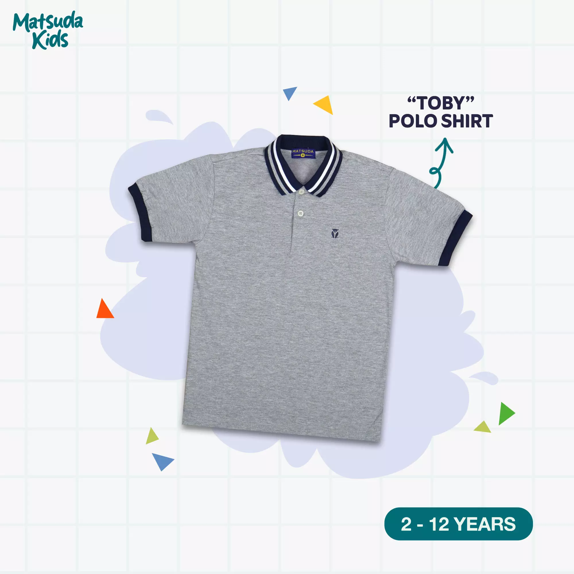 Matsuda baju kaos polo anak laki laki katun umur 2-12 Toby Grey