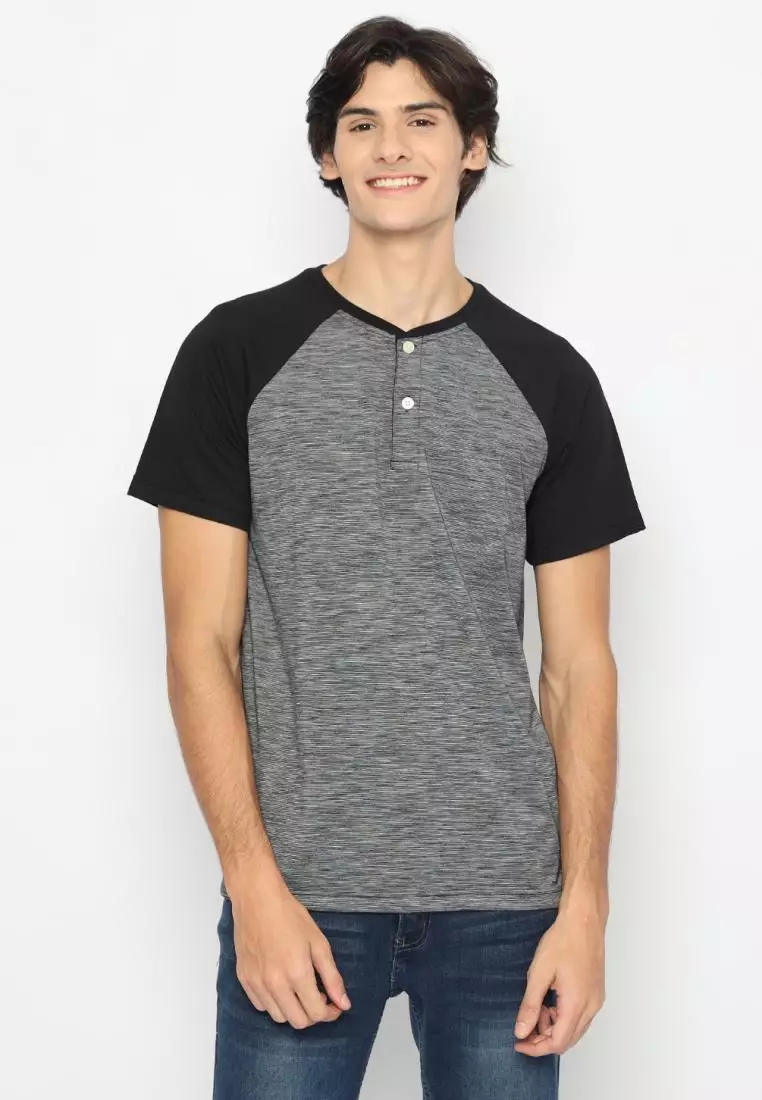 MATSUDA Kaos Pria T Shirt Henley Texture Slub Kawagoe
