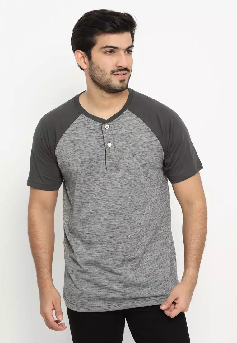MATSUDA Kaos Pria T Shirt Henley Texture Slub Kawagoe