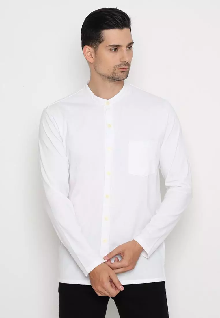 MATSUDA Kemeja Pria Polos Kerah Shanghai Lengan Panjang Katun Koshigaya
