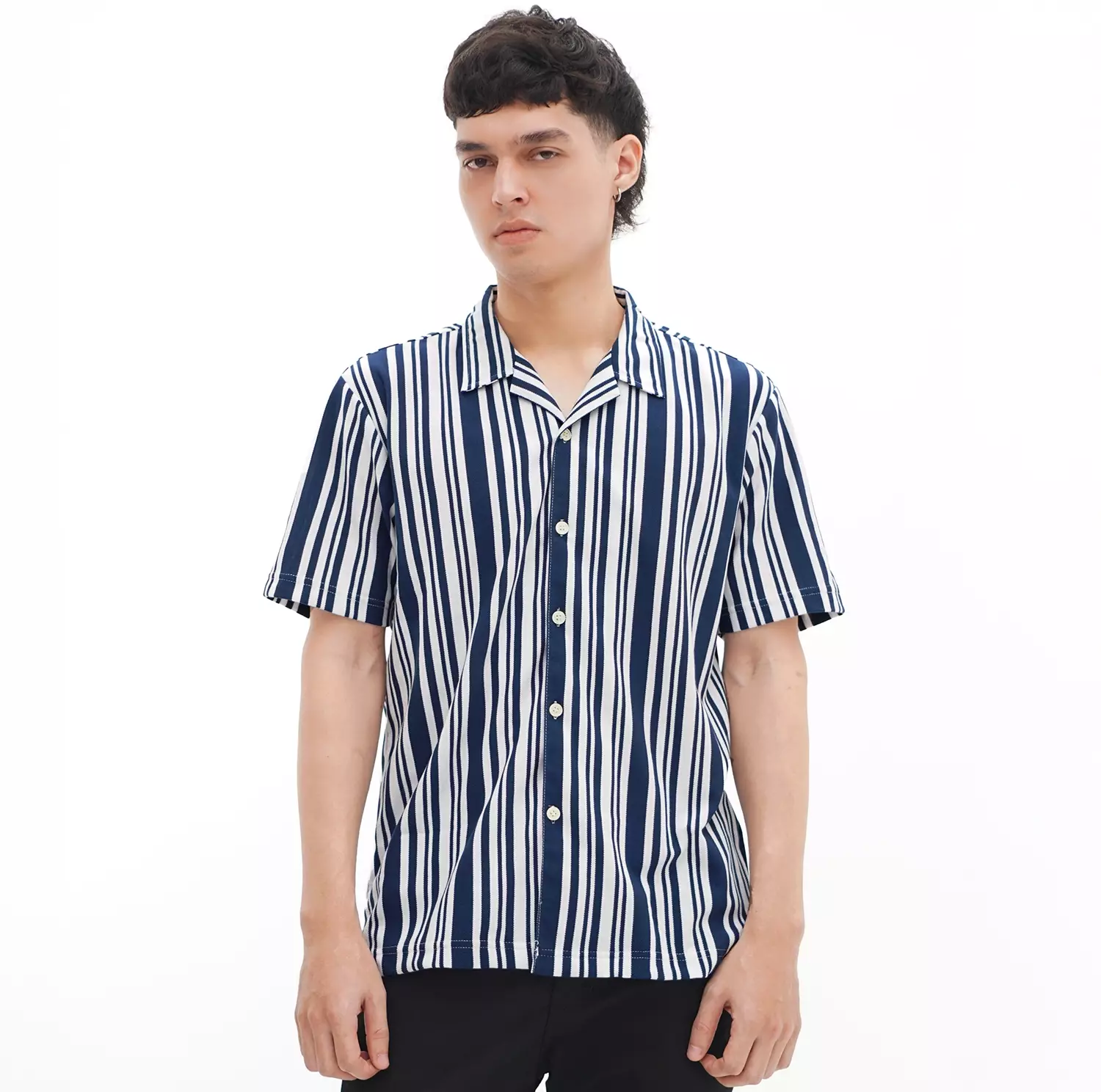 Matsuda Kemeja Pria Stripe Lengan pendek Tahara Blue Teal - White