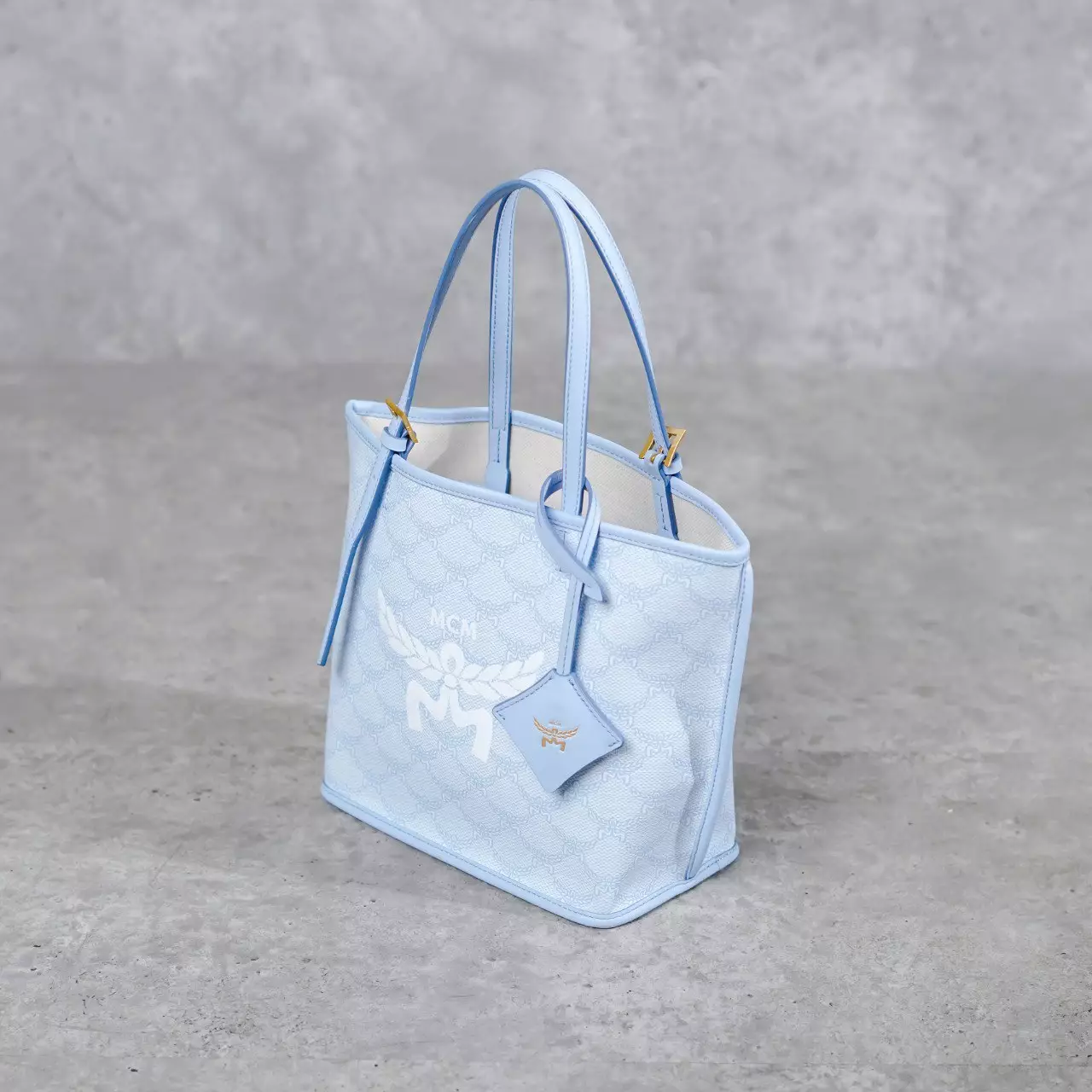 Tas MCM MONOGRAM BLUE SKY MINI TOTE BAG SMALL 100% ORIGINAL