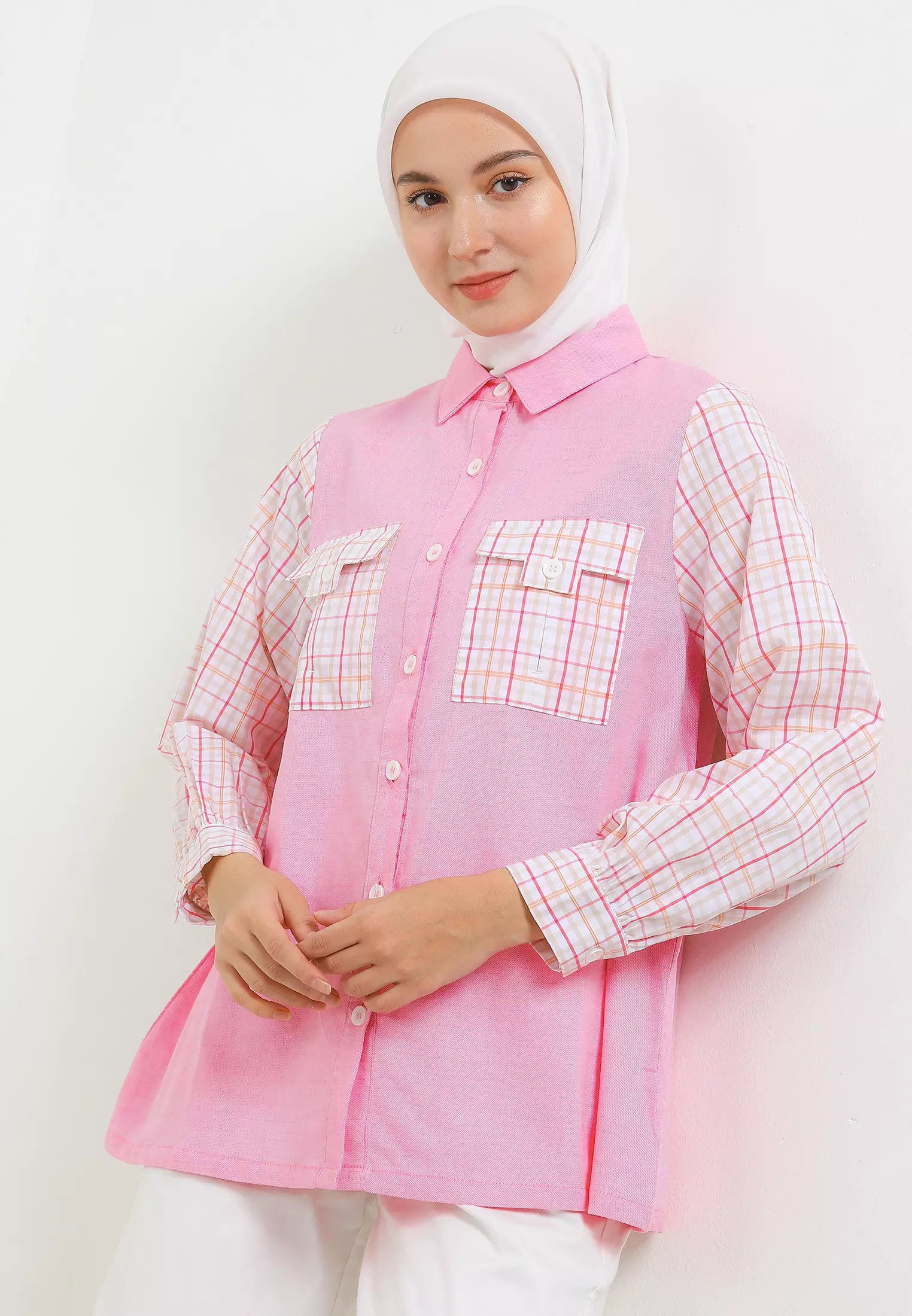 MFMW Emmelya Atasan Kemeja Pink Motif Kotak