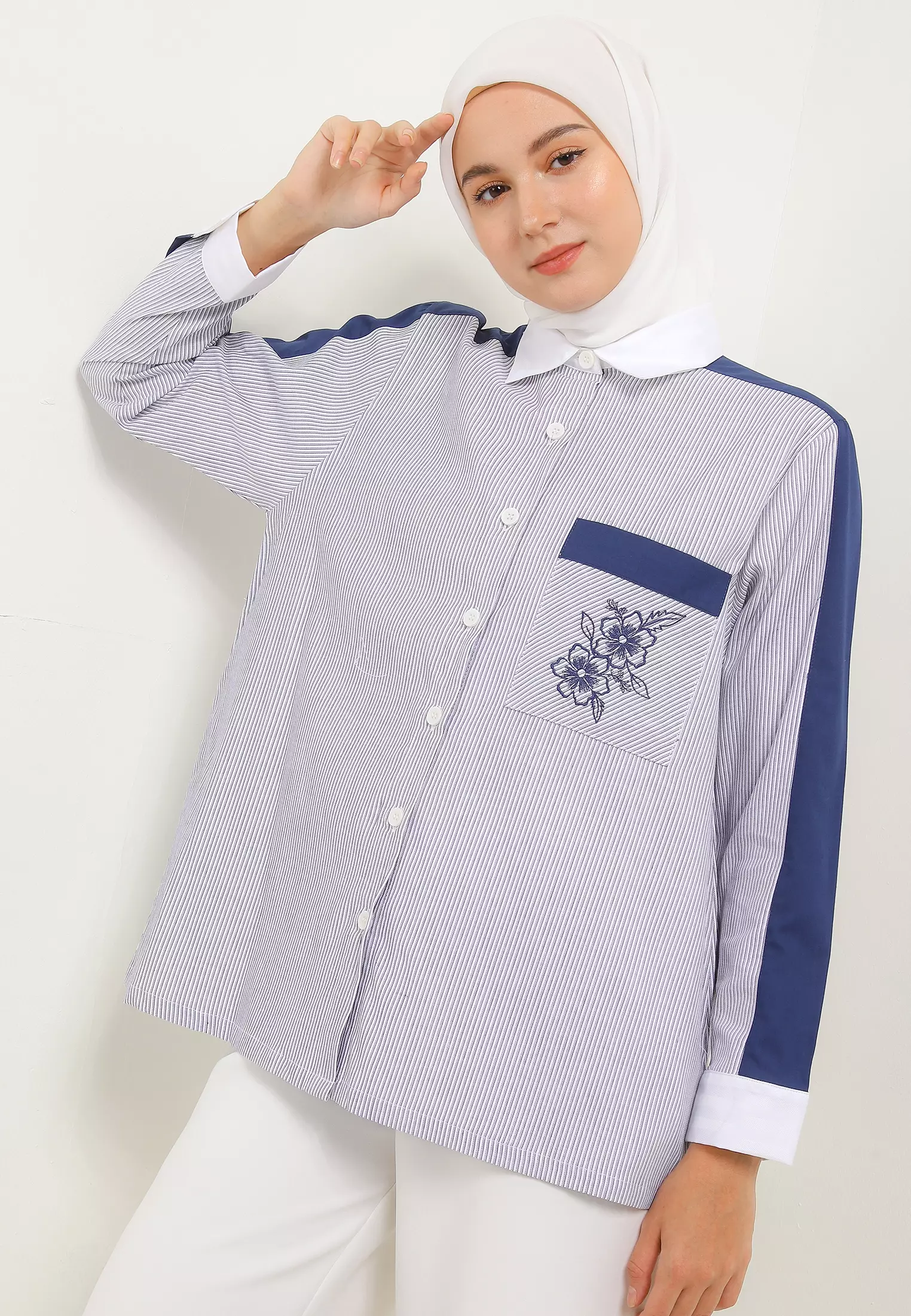 MFMW Harver Atasan kemeja Biru Motif Salur