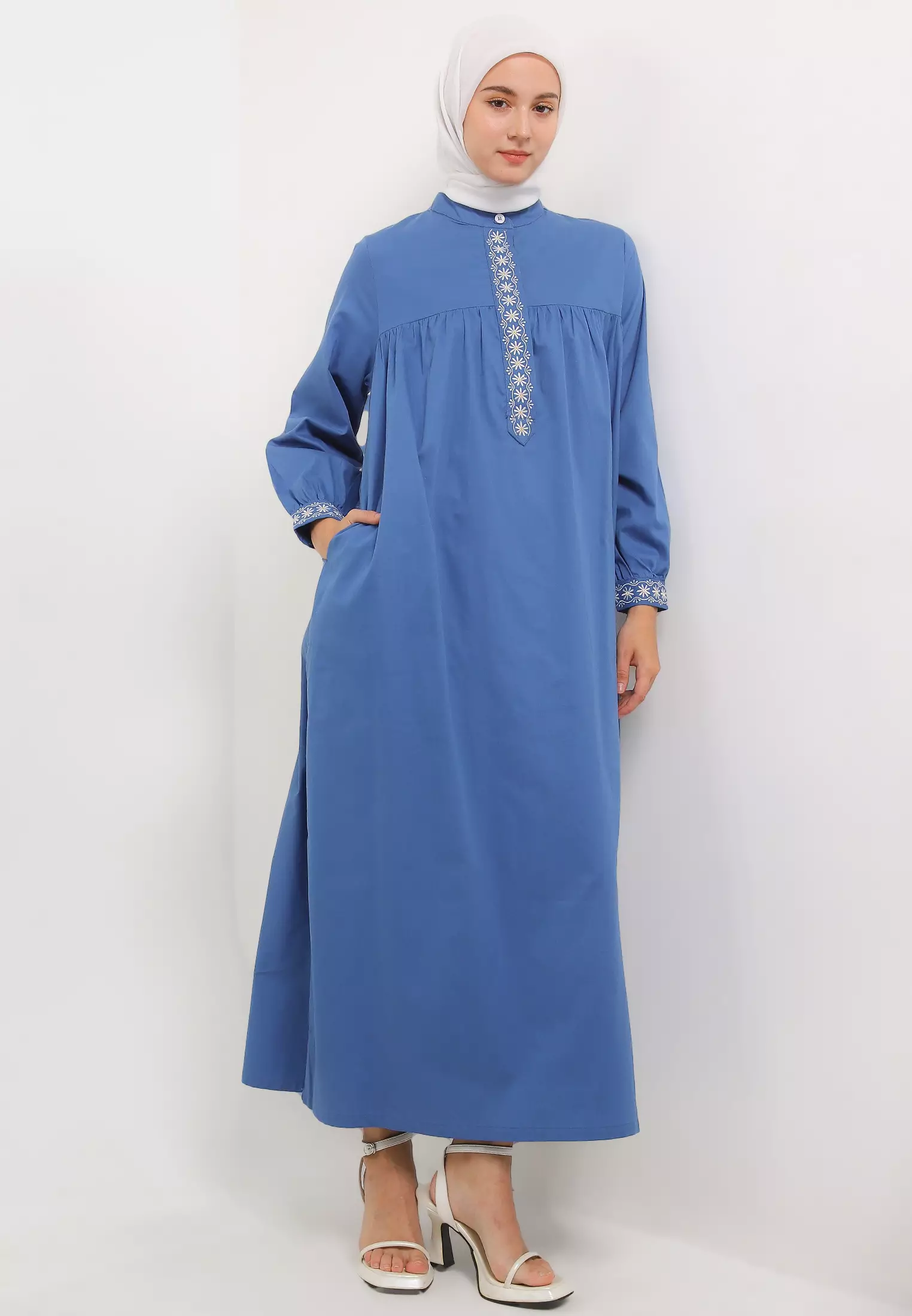 - Warna: Faded denim