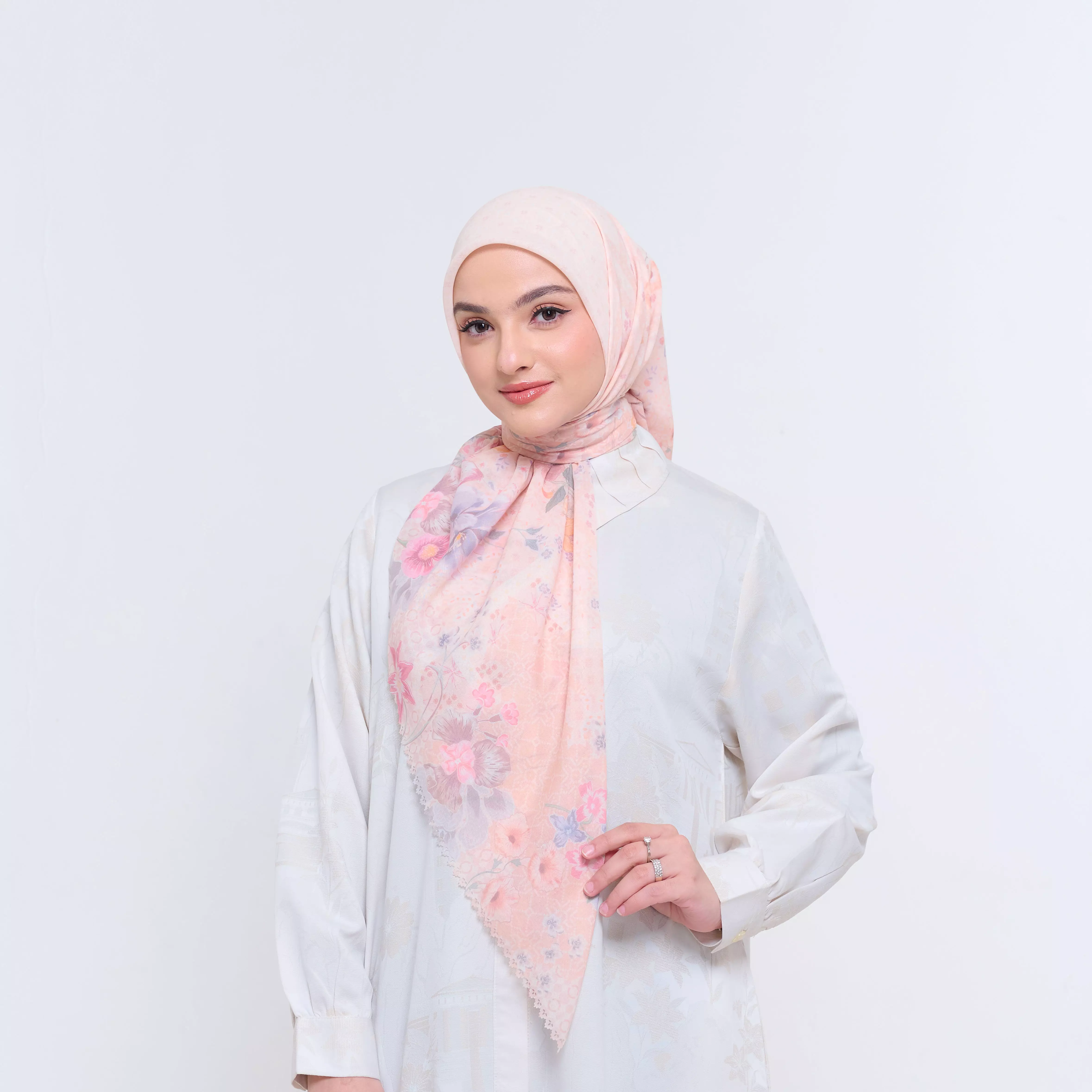 MFMW House Of Petals Scarf - Kerudung Segi Empat Premium Motif Bunga - Frosty Peach