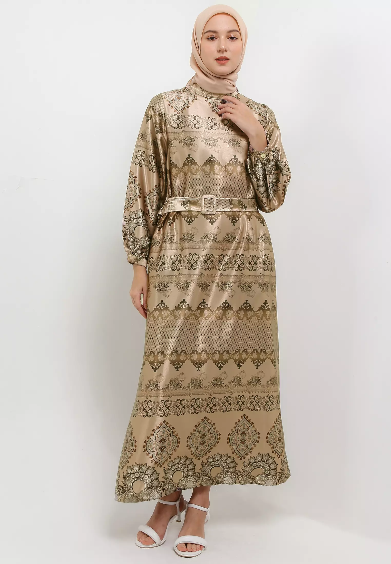 MFMW Jemimma Dress Gamis Satin Brown Motif