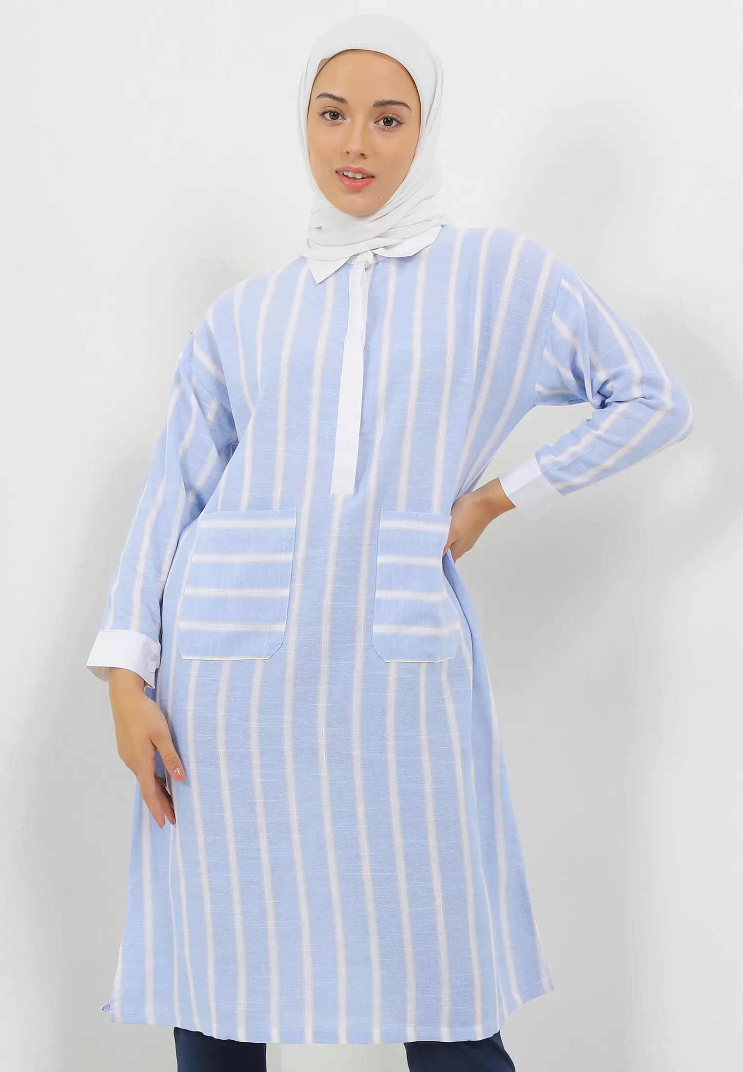 MFMW Kizaya Midi Dress Biru Motif Salur