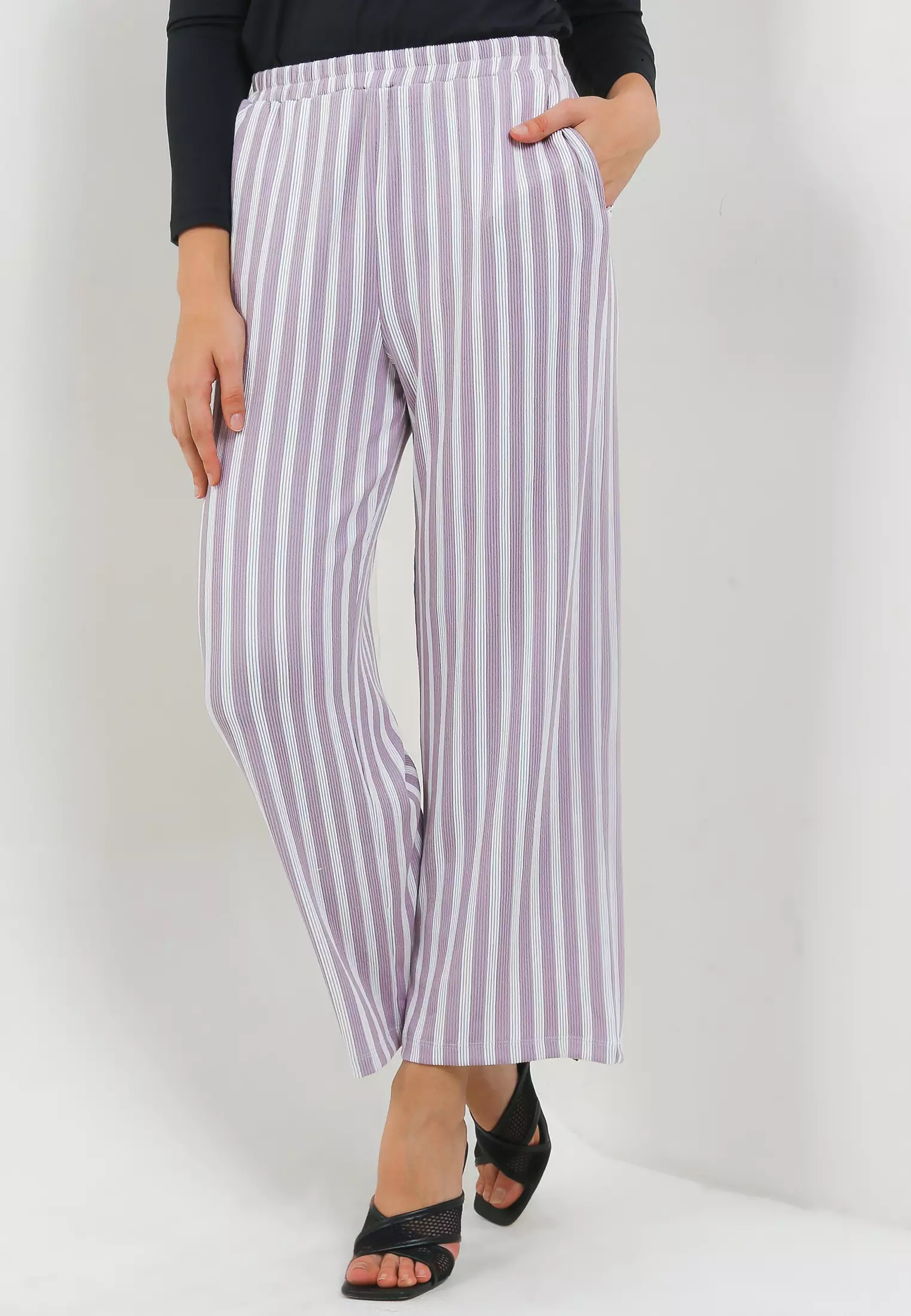 MFMW Kurniasari Celana Panjang Kulot Lilac Motif Salur