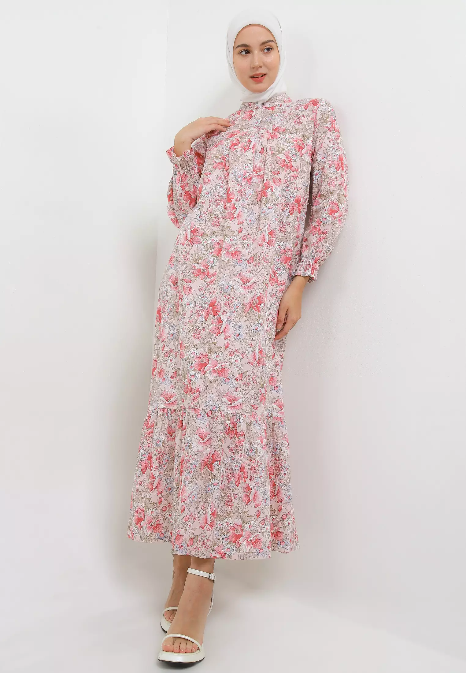 MFMW Levannia Dress Gamis Pink Motif Bunga