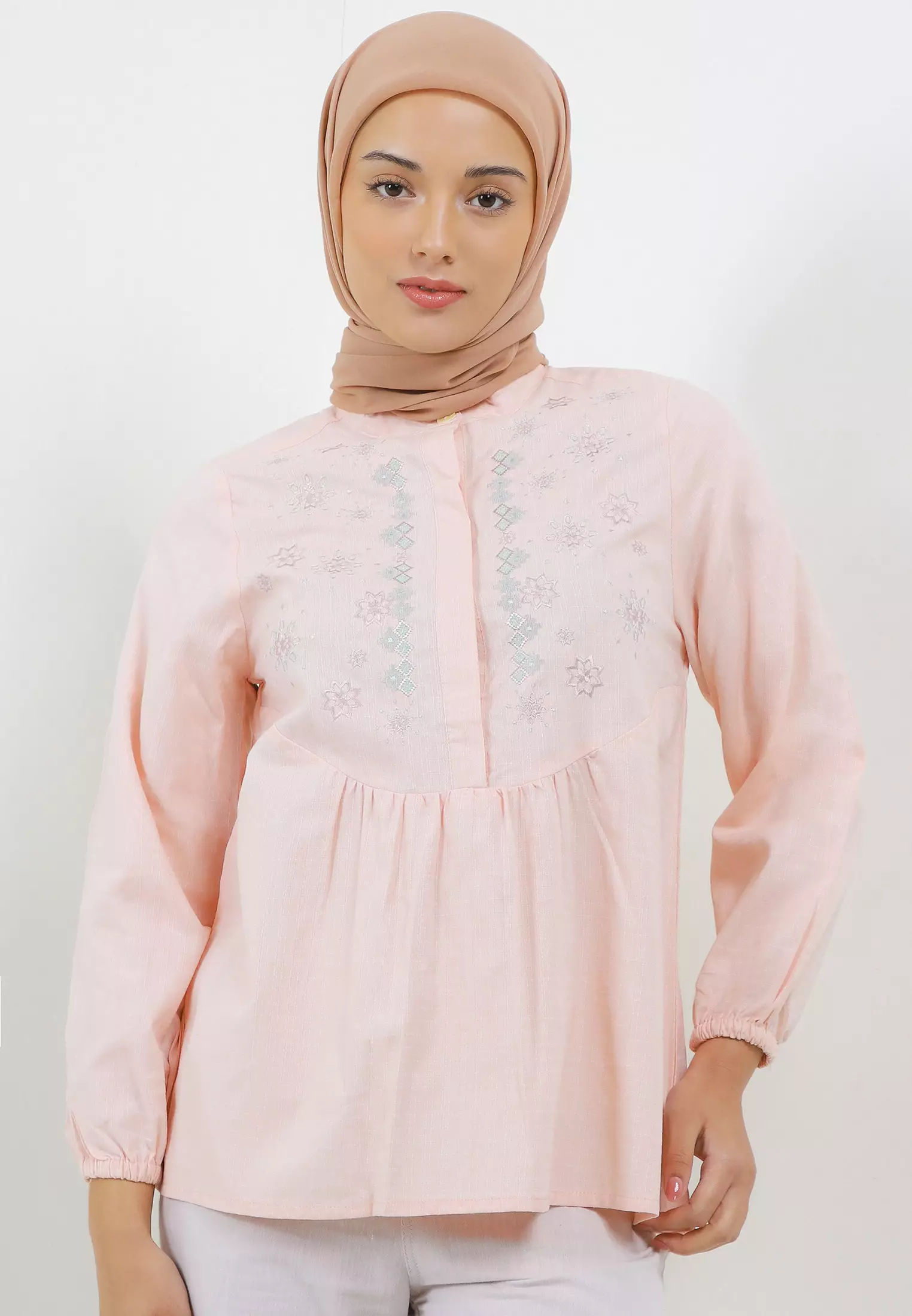 MFMW Merepiya Atasan Blouse Peach Motif Bunga