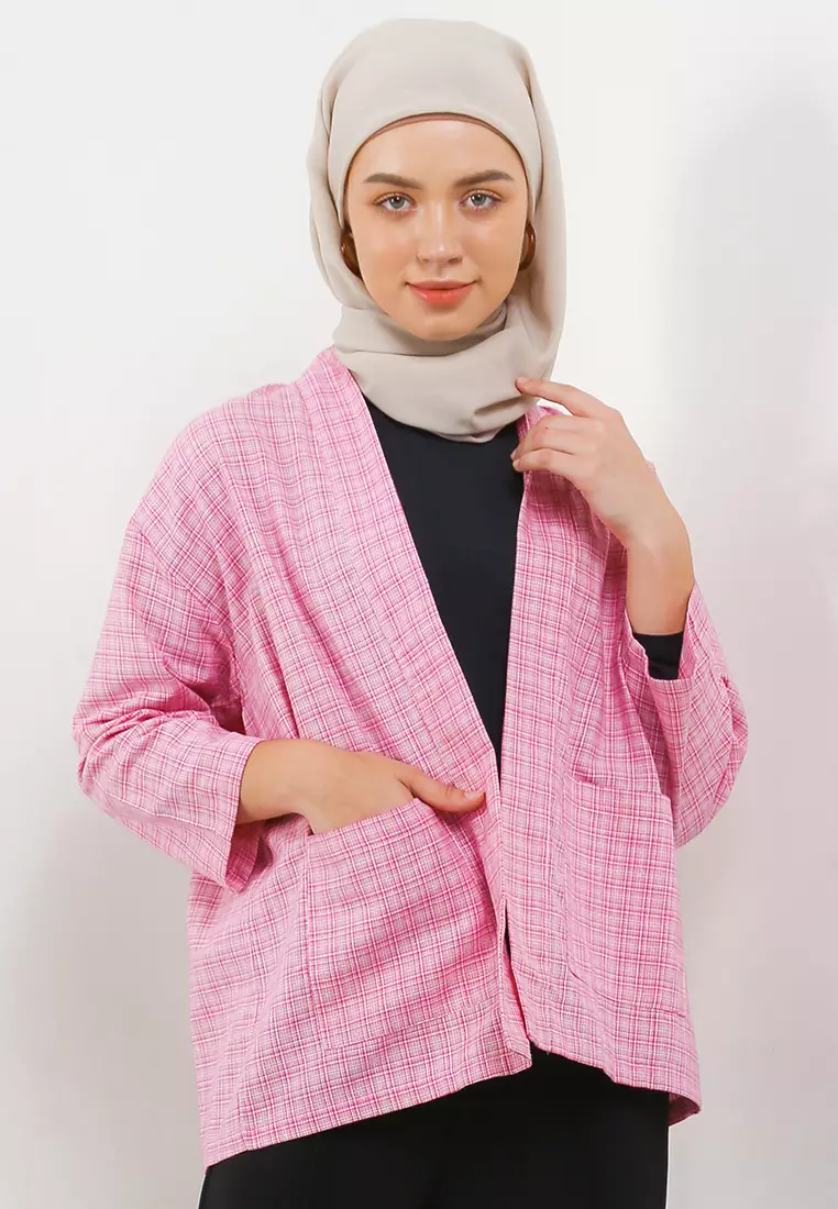 MFMW Ratatouille Outer Cardigan Fushia Motif Kotak