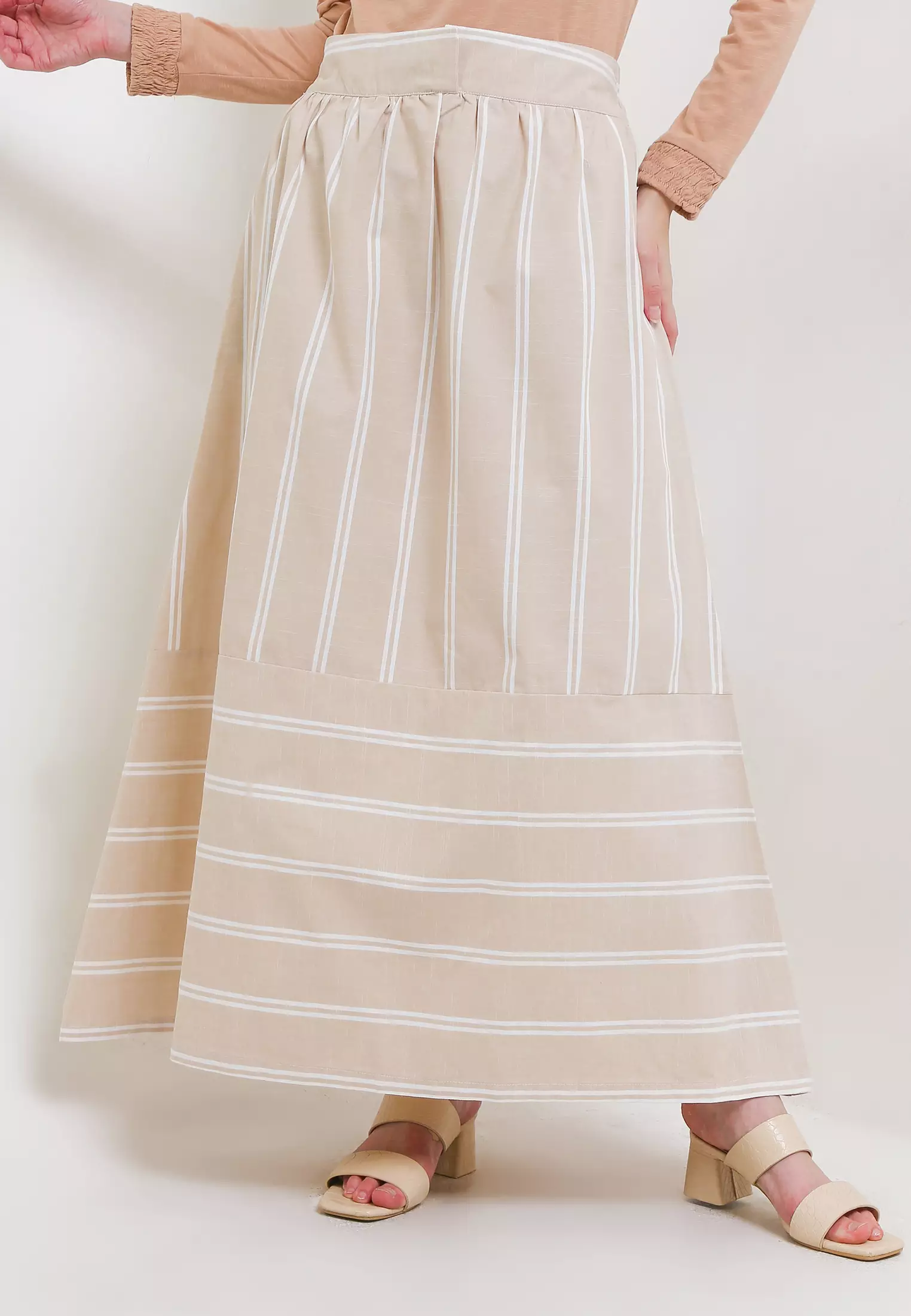 MFMW Rukza Rok Panjang Khaky Motif Salur Putih